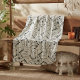 Este padrão de cobertor de velo inspirado no asteca tem uma vibração chic Boho com um arranjo geométrico de setas à volta de uma forma brilhante de sol. Esta versão contínua moderna tem um esquema simples de cor preta sobre a cor de fundo de sua escolha (a cor esbranquiçada mostrada aqui é opcional). Procure ID748 para ver outras opções de cores e produtos com este padrão.