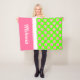 Bonito bolas de futebol cor-de-rosa e branca saltam por um campo verde brilhante. Personalize a borda cor-de-rosa correspondente na parte inferior deste cobertor com sua escolha de nome ou texto especial.