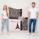 Enrole-se no charme romântico de Paris com este cobertor elegante. Ele apresenta um sofisticado design, misturando padrões de rendas pretas, cor-de-rosa e cor-de-rosa suave, que lembra o estilo clássico francês. Uma listra poca branca e preta, que faz um jogo, cruza na diagonal o cobertor, acrescentando um toque moderno. Adormecer a esquina é um delicado aglomerado de rosas rosa-pinceladas e verde-verde-verdeado, criando um sotaque natural e macio. A silhueta da Torre Eiffel icônica está orgulhosamente no fundo, acompanhada pela palavra de boas-vindas "Bonjour" em uma escrita graciosa. Feito de um tecido macio e aconchegante, este cobertor é perfeito para se esconder no sofá, adicionar uma camada de na moda na cama ou trazer um toque de chic parisiense para qualquer sala.