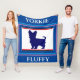 O cobertor azul claro e roxo Yorkie com nome personalizado.