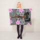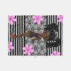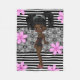 Um cobertor super fofo com riscas brancas e pretas em negrito. Um padrão abstrato super legal e retrô e uma linda e bonito moça de desenho animado.