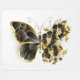 Borboleta de flores Dourada com orquídea de joias pretas, decorada com folhas de ouro sobre fundo branco.