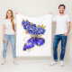 Borboleta de flores cinza, azul, safira, espumante com asa decorada com flores preciosos azuis com folhas de ouro sobre fundo branco.