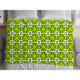 Bright green and white floral-patterned towels with daisies are displayed; one hanging on a rod, the other folded, evoking a fresh, cheerful vibe.