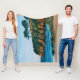 Brittany, baía de Douarnenez na costa francesa, uma praia arenosa cercada por belos penhascos com pinheiros. Este cobertor de velo mole é uma ideia-presente para amantes de praias rochosas e paisagens naturais em França. Uma pintura acrílica realista de Katho Menden