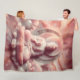 O Buda está sentado numa posição de lótus num pedestal de flores de lótus, com uma mão levantada num gesto de ensino ou bênção e a outra descansando no colo. O plano de fundo apresenta padrões giratórios, semelhantes a nuvens em tons de cor-de-rosa, branco e cinzas leves, acrescentando à atmosfera etérea e pacífica da imagem.