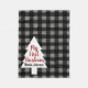 Meu primeiro bebê de Natal dimensionou cobertor de velo com um padrão de xadrez de verificação de búfalos e uma silhueta de árvore branca. Tenha seu bebê deitado nisso para uma foto perfeita de feriado!
