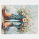 A Cowgirl temia um cobertor de velo com botas ocidentais e um buquê floral.