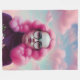 Uma pintura gerada pela IA de uma garota com cabelo cor-de-algodão doce rodeado por nuvens cor-de-rosa de algodão doce. Perfeito para um quarto de adolescente ou de menina adolescente.