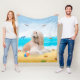 Um cão aficionado sentado na praia é uma ideia perfeita de presente para alguém que ama esta raça de cães.