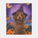 Abraçar o espírito do Dia das Bruxas com esta design encantadora que apresenta um cachorro fofo num chapéu de bruxa rodeado por abóboras entalhadas. Perfeito por adicionar um pouco de charme assustador às suas comemorações festivas.