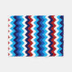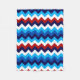 Um cobertor de velo de pequeno tamanho com um design de padrão giro e colorido de chevrons vermelho, branco e azul.