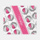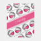 Este bonitinho cobertor de velo de basquete apresenta as imagens realistas das bolas de basquete que têm painéis cor-de-rosa, brancos e cinzas alternados organizados em um padrão ansioso espelhado - a frase "O campo de basquete é meu lugar feliz" em uma fonte casual, escrita à mão, em trechos de cinza entre as linhas angustiadas das bolas de basquete - o nome do atleta pode ser personalizado com uma largura de cheio cor rosa - é personalizável em branco - por katz_d_zynes