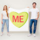 A lime green candy heart that says, "ME."