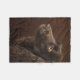 Design apresenta um retrato fotográfico de um cão com cabelo castanho sobre fundo castanho escuro.