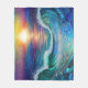 Convide a calma do mar para dentro de sua casa com esta paisagem surreal, onde uma bela mistura de matizes azuis e ondas coloridas opais e jade encontram o calor de um pôr do sol sonhador.