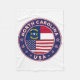 Crachá da Carolina do Norte com bandeira da Carolina do Norte e bandeira dos EUA cores, forma arredondada. Emblema da Carolina do Norte. Selo da Carolina do Norte. Coleção dos Estados Unidos.