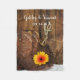A noiva e o noivo recém-casados adorarão se abraçar sob o super bronzeado e rústico Botas de Cowboy, Daisy e Horse Bit Country Fleece Blanket. Este cobertor de casamento, tema de um equino macio e aconchegante, apresenta uma fotografia floral acinzentada de um par de botas de vaqueiro marrom, flor de margarida amarela alaranjada, pedacinho de cavalo com rédeas de couro e colar de pérolas brancas com um fundo de madeira de casarão. Ele faz uma ideia de presente de manutenção de excelente para uma fazenda rural casual, mas clássica, rancho, equestre, cavalo ou festa de noivado ocidental, chá de panela ou tema de casamento.