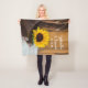 Personalize o charmoso e acolhedor País Sunflower Western Wedding Fleece Blanket com os nomes da noiva, noiva e cerimônia de casamento para criar uma manutenção duradoura de seu estilo de fazenda rural ou núpcias temáticas de rancho. Este cobertor de casamentos chic, macio e suavemente rústico, apresenta uma fotografia floral de um par de botas de cowboy de couro marrom com uma flor de girassol amarela com um fundo de madeira de celeiro de meteoros.