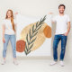 Um design inspirado em boho de formas simples em cores rústicas de marrom, bege e laranja com um caule de planta floral como foco.