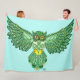 Nó Celta Verde trabalha coruja com envergadura de asa aberta num pano de fundo.