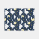 Ilustração de um padrão de céu noturno estrelado com nuvens fofas, luas luminosas e estrelas espalhadas em um fundo azul-marinho, evocando sentimentos de calma, serenidade e charme celestial.