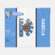 cobertor de velo com o tema do cheerleader feito em azul-céu e branco, com sotaques prateados e pretos. Gráficos de um futebol, megafone e texto gráfico decoram este cobertor aquecedor. Personalize o nome branco, no topo, para o seu cheerleader favorito.