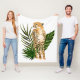 Cheetah Outlook I de Annie Warren. Um guepardo em um estilo aquarela se parece com folhas verdes tropicais ao fundo. | 164730Z