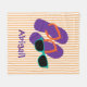 A cobertura feminino do velo caracteriza um par de chinelos roxos e alaranjados com um par de óculos de sol da cerceta em um fundo alaranjado e branco da listra. O texto customizável permite que você adicione seu nome. Este é um design perfeito para uma rapariga.