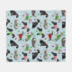 Calcinhas de Natal com sal e pimenta e casacos pretas e prateadas vestem chapéus de Santa, galhadas e blusas de argila em fundo azul com ornamentos dispersos.