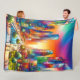 Este cobertor de velo tem uma cena de arranha-céu nele.