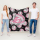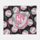 Esta manta espiritual de vôlei esportiva para raparigas apresenta uma grande cinza rosa, e uma arte branca, um vôlei estilizado, sobre a qual o seu nome e número de camisa podem ser personalizados, sobrepondo-se a um padrão de cor-de-rosa menor, cinzas e volichões brancos e ao texto de fonte desportiva "Eu adoro voleibol" que se estende entre as filas angoleiras - o fundo é preto personalizável - por katz_d_zynes