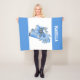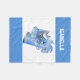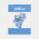 O cobertor do tema do Cheerleader é feito em azul-céu e branco, com gráficos de um vestido de cheerleader, megafone e pom poms, no meio. Personalize o nome branco do seu cheerleader favorito.