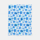 Bonito padrão de pintura a aquarela de flores modernas, em azul e branco, num cobertor de velo mole. © Pintura a aquarela floral por Sarah Trett. www.sarahtrett.com para www.mylittleeden.com