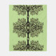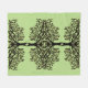 Imagem gráfica da árvore com galhos/folhas de choro. A imagem foi replicada e transformada de modo a produzir um efeito caleidoscópico. A imagem está ligeiramente vermelha no gráfico preto. O plano de fundo é verde-claro.