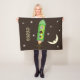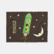 A cobertura bonito do velo com dois cães e um gato em um foguete verde enviam o vôo sob a lua crescente de sorriso. Fundo do marrom escuro. Personalize com nome da sua criança.