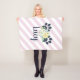 Um divertimento, cobertura lunática do velo que pode ser personalizada apenas para seu amigo peludo. Esta cobertura caracteriza dois impressões da pata dos azuis marinhos e um buquê do divertimento das flores colocadas em cima de um fundo listrado cor-de-rosa adorável.
