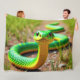 Este cobertor de velo tem um cobra verde nele.
