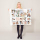 Personalize este cobertor de papel flexível com 16 fotos quadradas dispostas em um layout de colagem em grade, com uma imagem grande e o restante pequeno. O seu monograma inicial de solteiro aparece num quadrado rosa-pincelado no canto inferior direito. Adicione seu nome de família ou legenda personalizada na parte inferior da cinza de chic.