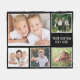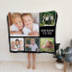 Crie um cobertor de manutenção de colagem personalizado de 5 fotos para aquele presente perfeito. Personalize com suas fotos de família, amigos, animais de estimação, memórias, eventos, fotografia, etc. em quadros brancos e adicione uma ou duas linhas de texto em uma simples tipografia branca contra fundo preto.