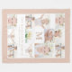 Colagem de fotos clássicas e quic com monograma, ano e nome, cobertor pastel neutro.