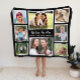 Dê uma olhada à mãe que ela vai tesourar com este cobertor personalizado com 8 fotos de colagem de seus filhos, família, animais de estimação, etc., em quadros brancos em um fundo preto. Você também pode personalizar a expressão para "Eu te amo" ou "Nós te amamos", quer ela seja chamada de "mãe", "Mãe", "Mamãe", etc., e adicionar nomes, tudo em letras brancas e tipografia.