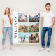 Crie seu próprio cobertor personalizado de colagem de fotos. Adicione suas próprias 6 fotos e monograma personalizado ou texto personalizado a este simples design de cobertor moderno.