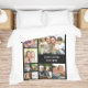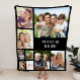 Um cobertor personalizado de colagem de fotos para aquele presente perfeito. Personalize com nove fotos de família, animais de estimação, memórias, eventos, fotografia, etc. e adicione uma ou duas linhas de texto em uma simples tipografia branca contra fundo preto. As cores do fundo e do texto podem ser alteradas editando-se na ferramenta design.