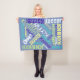 Lance macio da cobertura do velo com colagem conhecida em azul, em verde, em amarelo e o branco. Faça alguém sentir muito especial com um travesseiro personalizado com todos os nomes que você escolher. O clique personaliza, edita para mudar a cor do fundo. O modelo do nome simples ou adiciona fotos para personalizar-se. Aniversário feito sob encomenda, parabéns ou algum dia, animador, feliz, divertimento e festivo.