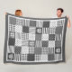 A manta de retalhos moderna gingham preto e branco Fleece Blanket apresenta na moda mix de padrões geométricos populares - bolinhas, corações, listras e cheques de búfalos, design elegante e fofo no estilo da fazenda