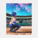 Coletor e estádio do softball que pintam a menina bonita nova no uniforme azul do esporte. Aperfeiçoe para jogadores e fãs de softball. Você pode personalizá-lo com seu nome ou deixá-lo vazio