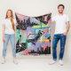 Colorful urban graffiti patchwork pattern blanket featuring bold abstract blocks, expressive brush strokes, scribbles, stars, and mixed-media textures in bright blue, yellow, pink, orange, and black. Energetic and edgy with a modern street art aesthetic, this seamless design is ideal for graffiti art lovers, maximalist style fans, creative teens, and contemporary art enthusiasts.