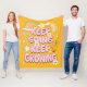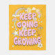 Design de texto motivacional "Continue crescendo" com cogumelo, flores, estrelas, arco-íris, nuvens e decoração solar