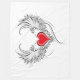 Coração vermelho pintado artificialmente com cinza de asas de anjo, decorado com contorno liso preto.